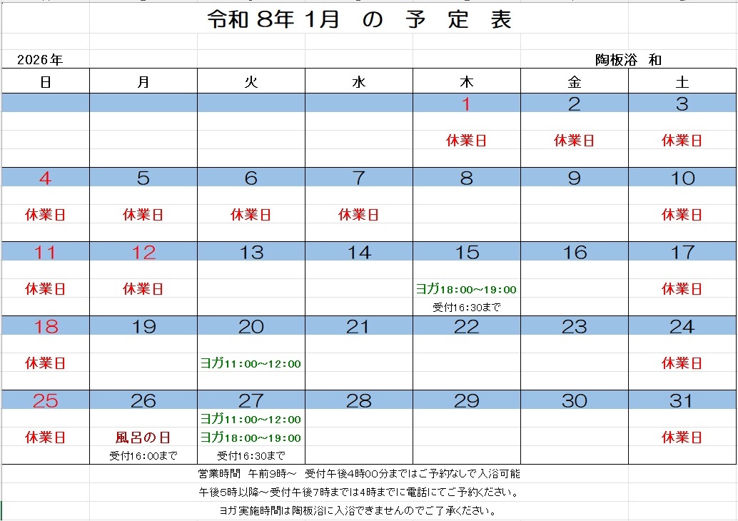 土曜・日曜・祝日 抗酸化陶板浴